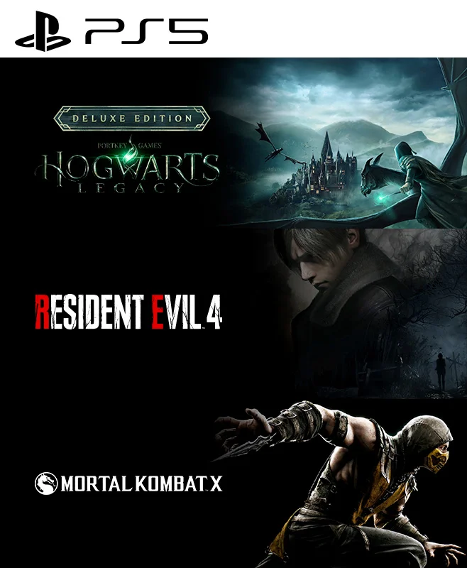 3 Juegos en 1 Hogwarts Legacy Digital Deluxe Edition mas Resident Evil 4 Remake mas Mortal Kombat X PS5