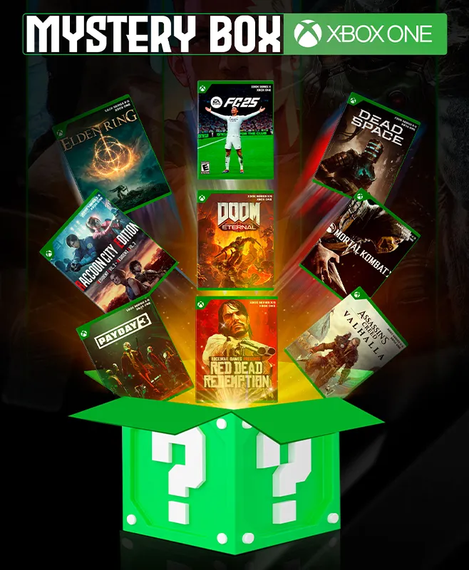 Con nuestra Mystery Box para XBOX ONE , recibirás 6 juegos seleccionados al azar, elegidos de un amplio catálogo que incluye los títulos visibles en la imagen del producto y más de 1,200 opciones adicionales.